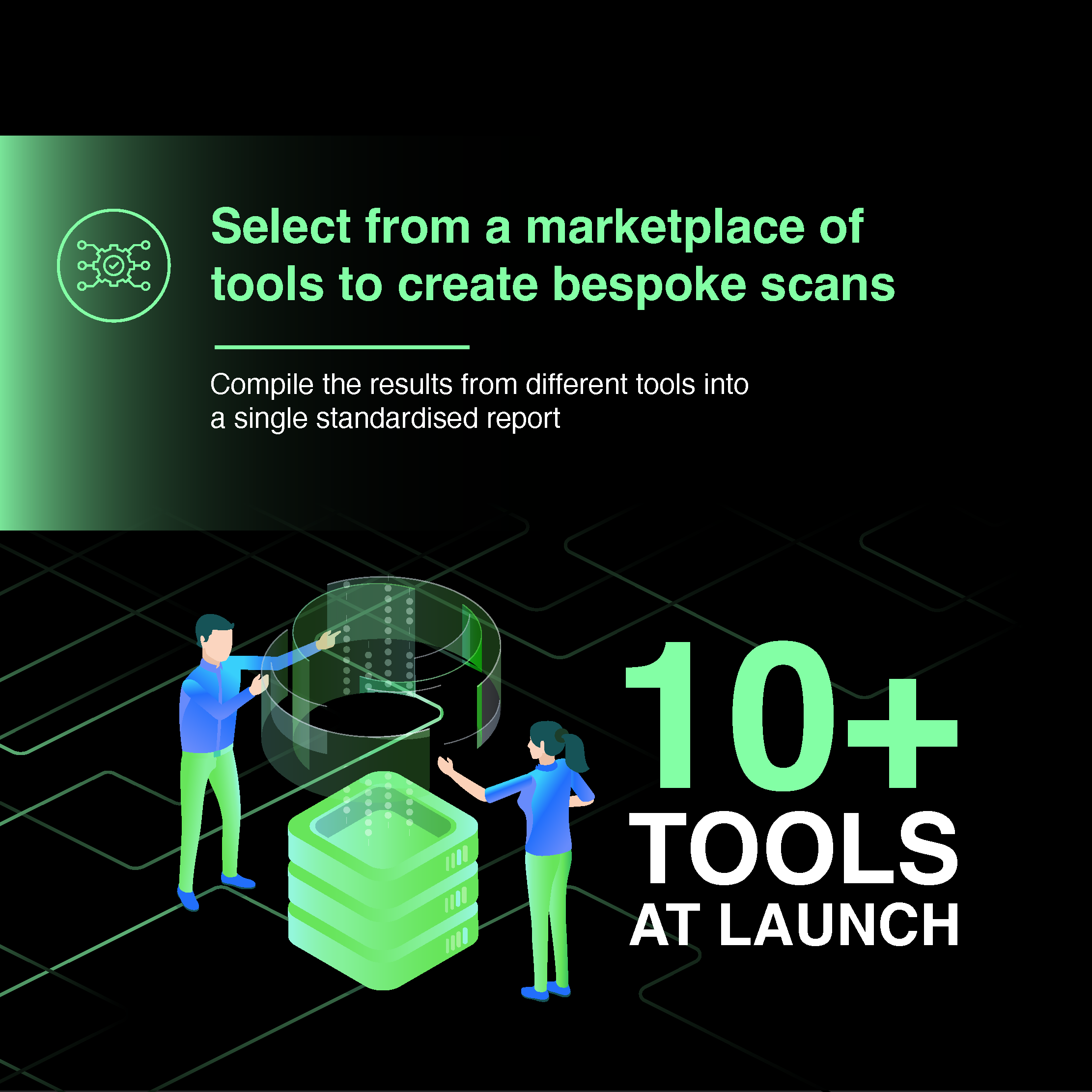 Use tools you trust, and deploy new tools from the dashboard. Assign specific clusters of scanning tools on an app-by-app basis to optimise your scanning capability and protection.
